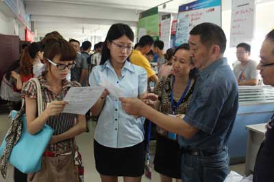 7月26日,2013年高校畢業(yè)生專場(chǎng)招聘會(huì)在市人力資源市場(chǎng)二部(原眉州人才市場(chǎng))召開,市人力資源服務(wù)中心副主任、區(qū)委組織部副部長(zhǎng)、區(qū)人社局局長(zhǎng)詹金松蒞臨招聘會(huì)現(xiàn)場(chǎng),對(duì)企業(yè)招聘情況、大學(xué)生求職意愿等進(jìn)行了調(diào)研,并現(xiàn)場(chǎng)為求職者講解大學(xué)生創(chuàng)業(yè)優(yōu)惠政策和畢業(yè)生報(bào)到流程,指導(dǎo)求職者如何正確擇業(yè)就業(yè)。此次專場(chǎng)招聘會(huì)共提供崗位1900余個(gè),求職人員約2200人次,求職畢業(yè)生約占60%,崗位涉及銷售、行政、生產(chǎn)技工等多個(gè)種類。在招聘過程中,許多企業(yè)取消了“具有相關(guān)工作經(jīng)驗(yàn)”的限制,各類綜合崗位也取消了專業(yè)限制,為畢業(yè)生就業(yè)拓寬了渠道,提供了更好的就業(yè)機(jī)遇。此次招聘會(huì)的召開也將2013年大中專畢業(yè)生招聘月活動(dòng)正式拉開了序幕,招聘月活動(dòng)將持續(xù)至8月底結(jié)束。